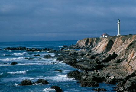 lighthouse stormy sea.